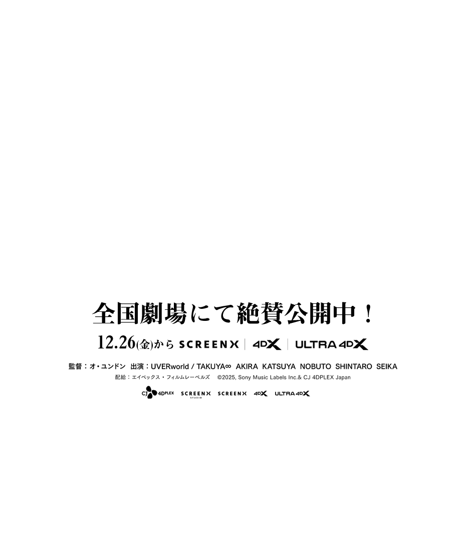 映画「UVERworld THE MOVIE 25: to EPIPHANY」12月26日(金)から劇場を拡大しSCREENX、4DX、ULTRA 4DX を公開!ーSCREENX先行公開映像を解禁ー
