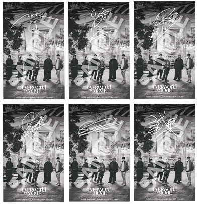 - ※特典は、絵柄は共通で1種・ランダムでメンバー1人ずつのサイン入りとなります。